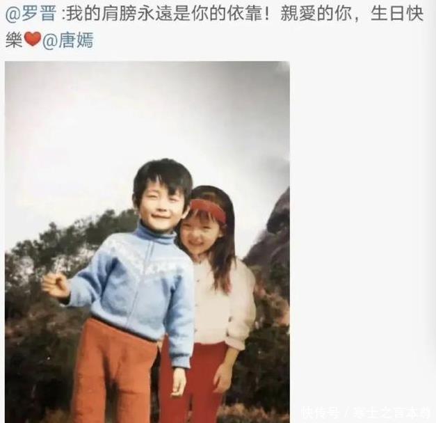 2016年唐嫣生日这天,罗晋在微博晒出旧照,是他与唐嫣两人的童年合照。 文案写道:“我的肩膀永远是你的依靠。”